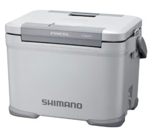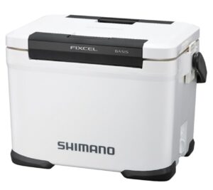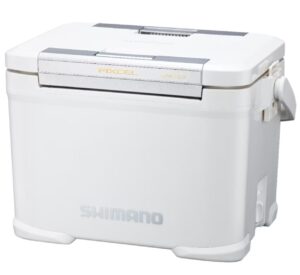 シマノのフィクセルシリーズの中で、最も多くのアングラーに支持されているのが、このウレタン断熱を採用した「ベイシス」です。ボディ全体に高密度の発泡ウレタンが充填されており、ICE値(氷の保持時間)は「43h」へと大幅に跳ね上がります。フィクセルならではの「座れる堅牢ボディ」「ワンアクション両開きフタ」「ワンタッチ水栓」といった神機能はそのままに、真夏の釣行でも全く不安を感じさせない確かな保冷力を手に入れた、まさに「弱点のない優等生」です。また、シマノのクーラーボックスは内装に抗菌剤(ノバロンなど)が練り込まれているモデルが多く、魚の嫌な生臭さがプラスチックに移りにくいという、清潔さを保ちたいアングラーにとって非常に嬉しい隠れたメリットも持っています。