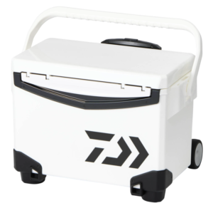 ダイワの15L(15リットル)クーラーボックスにおいて、初心者から中級者、そして上級者への階段を登るアングラーに絶大な支持を受けているのが、この「TS 1500」です。最大の特徴は、最も熱の影響を受けやすい底面に加え、太陽が傾いた際の強烈な直射日光を浴びる長側面の合計「3面」に極厚の真空パネルを配置している点です。防波堤の焼けたコンクリートや船のエンジン熱といった下からの「地熱」を防ぐだけでなく、周囲からの熱気も強力にシャットアウトします。ダイワの厳しい保冷力テストにおいても極めて高い評価を得ており、真夏の炎天下でも氷が溶け切らない驚異の性能を誇ります。自重は真空パネルを採用しているため約3.6kgと、スチロールの安いモデルと比較すると少し重くなりますが、15Lという取り回しの良い絶妙な大きさ・サイズ感のおかげで、持ち運びの苦労は最小限に抑えられています。濡れた磯場でもピタッと止まる強力ゴム脚「ふんばるマン」も搭載し、保冷力と機動力を高次元で融合させた、ダイワの技術力の結晶です。