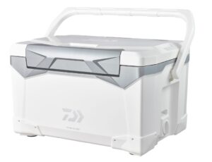 ライトトランクαシリーズの頂点に君臨するハイエンドモデルが、この「ZSS3200」です。最大の特徴は、底面・側面・フタの「全6面」に真空パネルを搭載している点に尽きます。魔法瓶と同じ原理で外部からの熱伝導をほぼ完全に遮断するため、ダイワの32Lクラスの中で桁違いの保冷力を誇ります。真夏の船上や、日陰の全くない灼熱の堤防、あるいは車内に一時的に置いておくような過酷な状況下でも、氷の溶けるスピードが圧倒的に遅く、数日間の遠征釣行でも初日の鮮度を維持することが可能です。また、ハイエンドモデルらしく、濡れた甲板やツルツルした堤防でもピタッと止まる強力な滑り止めゴム「ふんばるマン」が底面四隅に標準装備されています。自重は6.1kgとシリーズの中では最も重くなりますが、獲った魚を最高の状態で持ち帰るというクーラーボックス本来の目的を極限まで追求した、まさにプロ仕様の逸品です。