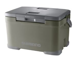 「フィクセル TD(リミテッドクラス相当)」は、真夏の過酷な環境下でターゲットを狙うエキスパートアングラーに向けて開発された、高保冷力のハイスペックモデルです。最大の特徴は、底面と長側面の計3面に配置された「真空パネル」と、高密度ウレタンのハイブリッド断熱材です。底面からの強烈な地熱だけでなく、横からの太陽光による熱の侵入も強力に防ぐため、ウレタン単体のモデルとは一線を画す氷の持ちを実現しています。また、このクラスになると内装のプラスチック素材に抗菌剤「ノバロン」が練り込まれており、長年使用しても魚の嫌な臭いが染み付きにくく、常に清潔な状態を保つことができます。大容量30Lでありながら、シマノ特有のスリムボディ設計により持ち運びやすく、船の限られた足元スペースにもスッキリと収まります。大型の滑り止めゴムも標準装備されており、揺れる船上でもクーラーが滑り回る危険がありません。