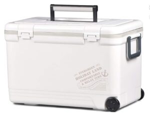日本製のクーラーボックスとして、釣具店やホームセンターで長年愛され続けている超定番モデルが、伸和の「ホリデーランドクーラー」です。その中でも「33H」は、33Lというダイワ・シマノの30Lクラスを凌駕する大容量を誇りながら、実売価格が非常に安いという圧倒的なコストパフォーマンスを持っています。低価格帯でありながら、内寸の幅が45cm以上確保された横長設計になっているのが素晴らしい点で、中型の青物やスズキなどもすっぽりと収納できます。断熱材はスチロールですが、厚みがしっかりとあるため、氷を多めに入れれば日帰りの釣りには十分対応可能です。また、水抜きに便利な水栓も標準装備されており、釣行後の後片付けも簡単です。自重わずか3.1kgという驚異の軽さを活かして、ベテランアングラーが「車の中に置いておく2台目のサブクーラー」として活用したり、釣った魚を友人におすそ分けする際の運搬用として使ったりと、工夫次第で無限の使い方ができる名機です。