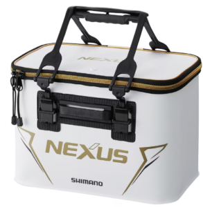 - おすすめポイント:シマノ磯ブランドの最高峰「リミテッドプロ」。このバッカンの凄さは、何と言っても「壁の硬さ」です。極厚のEVAシートを採用しており、全体重を乗せて柄杓を押し付けてもビクともしません。これにより、超遠投用のカチカチのコマセをストレスなく作れます。また、「ガチットハンドル」機能により、ハンドルが天面でピタッと固定され、邪魔になりません。ブラック×ゴールドのデザインは釣り場で圧倒的な存在感を放ちます。