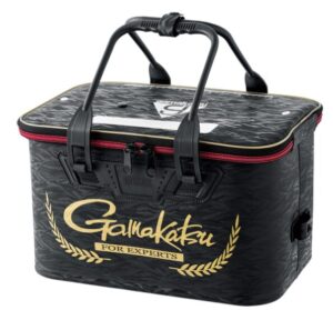 - おすすめポイント:「磯釣りといえば、がまかつ」。そのブランド力は健在です。このバッカンを持っているだけで、周囲からは「熟練者」の雰囲気が漂います。「セミハード」表記ですが、がまかつ特有の特殊エンボスシートを採用しており、型崩れや横倒れに非常に強い作りになっています。ネームスペースが付いているのも、渡船利用時の取り違え防止に役立つ実用的なポイント。シンプルながらも赤と黒のコントラストが美しく、所有欲を満たしてくれます。