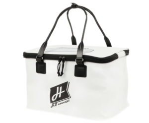 釣り場へ向かう移動中は、リールや予備のウキ、タオルなどを収納する防水バッグとして活躍します。釣り終わった後は、汚れた道具をまとめて放り込み、水洗いできるバスケットにもなります。 また、別売りのエアーポンプ(ブクブク)をセットすれば、釣った魚を生かしておく「ライブウェル」としても使える、非常に汎用性の高いアイテムです。