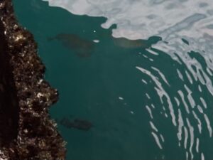 下を覗き込むだけで、様々な魚を目視できます。上写真はメジナ、アイゴが写っています。