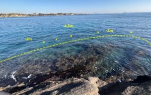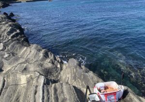 ハエ根の切れた先の海底は主に砂地になっており、ウキフカセ釣りで遠投できればクロダイやメジナを狙うことができます。手前のハエ根に道糸が引っかからない様に十分注意しましょう。