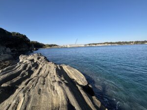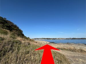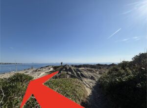 階段を下り終えると磯場に出るので、左方向に進みます。