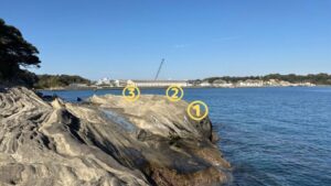 周辺に位置する『潮見』、『安房崎』、に比べて少し奥まった場所に位置し、釣り場も小さいため存在感は薄いですが、状況次第では様々な魚が狙える好釣り場です。
