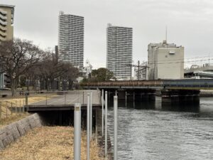 対岸は立ち入り禁止なので、釣りができるのは横浜駅側から見ての岸のみになります。