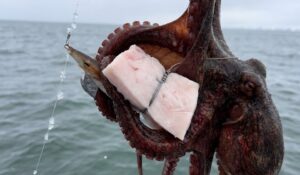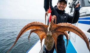 冬に釣れるキロアップの渡りダコは、身が締まり、噛めば噛むほど味が出る「筋肉の塊」です。