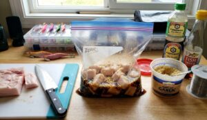 漬け込む:カットした脂身をジップロックに入れ、タレが全体に回るように揉み込みます。