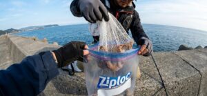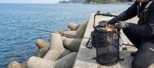 これがタコ釣りにおける最大のライフハックです。 締めたタコ(または、まだ締めていない活かしておくタコ)は、必ず「ファスナー付きの網袋(洗濯ネットやタコ専用のビク)」に入れます。